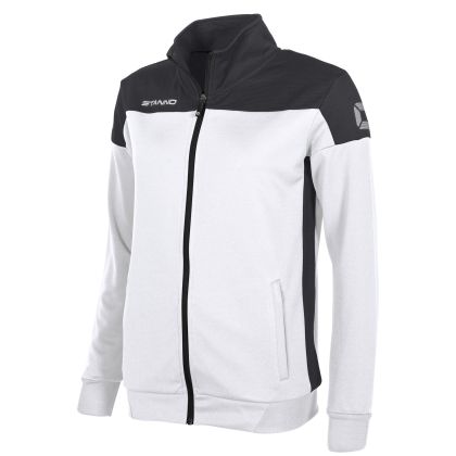 This stylish women's jacket is perfect for wearing before and after exercise or during warm-ups. Part of the Stanno Pride collection, it features two front zippered pockets for secure storage. The fitted cuffs, made from elastic rib material, provide a snug fit, while the breathable mesh fabric on the shoulders and sides ensures a light and airy feel. The elastic rib hem at the waist offers an adjustable, comfortable fit. Whether for workouts or casual wear, this jacket combines functionality with sleek design, making it an essential addition to your athletic wardrobe.