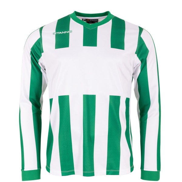 The Stanno Aspire Long Sleeve Shirt is crafted from 100% recycled polyester with a ClimaTec finish for superior moisture-wicking performance. It features a sleek sublimated design with vertical stripes and includes a 20 cm high sponsor area on the front. The shirt is equipped with Stanno logos and a mesh structure that enhances moisture transport, keeping you dry and comfortable. Long sleeves with ribbed cuffs provide a secure fit, while double-stitched seams ensure added strength and durability, making this shirt perfect for both performance and style. All orders are on a 4-week turnaround depending on stock availability£21.00